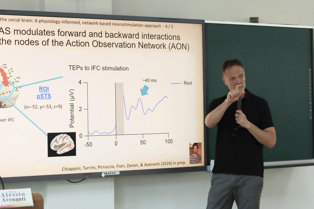 本次讲座系统阐述了认知神经科学研究的最新进展。Avenanti教授深入浅出地介绍了认知神经科学中的脑刺激技术,探讨了从拓扑学到连接学方法、从传统模块主义到连接组学的发展历程,并重点讨论了认知神经科学研究中关于因果性、连接性和可塑性等核心概念。他强调了理解大脑活动如何影响感知和行为的重要性,比较了相关性方法与因果性方法的不同之处,为理解脑功能提供了新的视角。