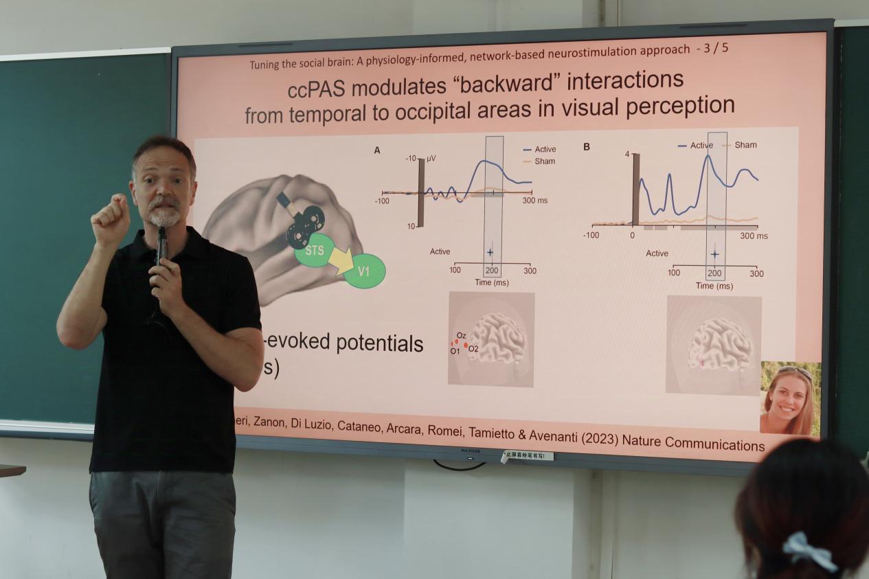 在提问环节,现场师生就ccPAS如何精准作用于特定脑区以及其在神经疾病治疗中的应用前景等问题踊跃提问。Avenanti教授耐心解答,进一步阐释了ccPAS的作用机制和潜在应用方向,为在场师生带来认知神经科学领域关于脑刺激研究的前沿视角和深度启发。