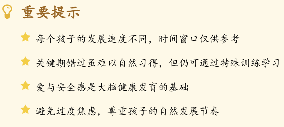 通过这些大脑发育时间表,我们能更清楚孩子大脑的成长节奏。这些黄金期,是生命赋予孩子的独特礼物,也是父母陪伴的宝贵机会。它不是一场竞赛,而是一段用心灌溉的旅程——用爱的语言滋养神经连接,用自由探索激发无限可能。理解规律,把握契机,就是给孩子最好的支持。