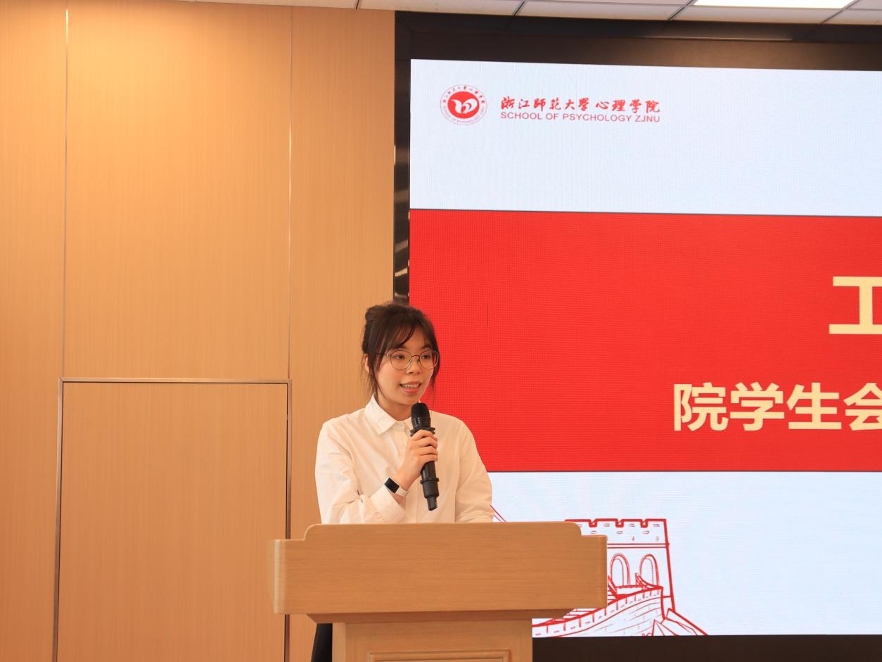 院学生会执行主席黄瑞瑜、院研究生会执行主席陈欣欣分别进行2024-2025学年学生会、研究生会工作报告。