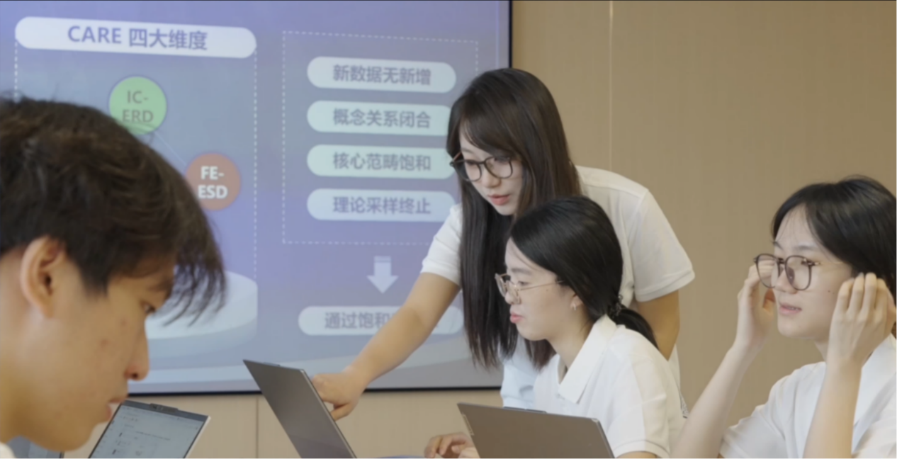赛事筹备期间,团队走访全国十余所高校,参与国内外学术会议6次,积极吸纳前沿理论与研究方法。项目共完成29轮专家评审,持续优化研究模型,夯实了研究的理论根基与实践价值。校党委副书记吕迎春、校团委副书记朱哲成多次现场指导;学院党委书记马莉、团委书记兼学工办主任喻松全程跟进;副院长汪俊与青年教师褚晓伟、滕静、彭思韦、刘笑语等集体指导,推动项目内容不断深化完善。