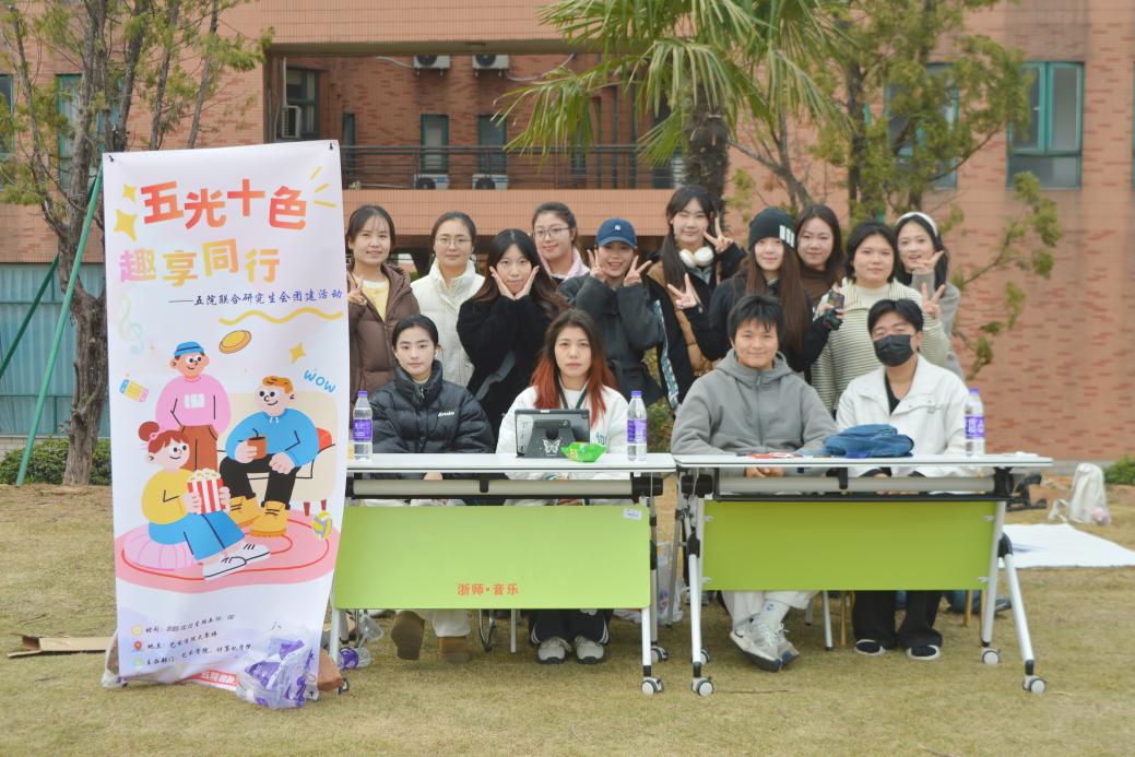 2025年12月12日下午,由浙江师范大学艺术学院研究生会主办,永利23411、艺术学院、计算机科学与技术学院、体育与健康科学学院和设计与创意学院研究生会文体策划部联合承办的“五光拾色,趣享同行”五院研究生联合团建活动在19幢大草坪顺利举行并圆满落幕。本次活动汇聚五院共60名研究生会成员,旨在通过趣味协作与才艺互动,促进跨学科融合,增强团队凝聚力,营造积极向上、团结协作的校园文化氛围。